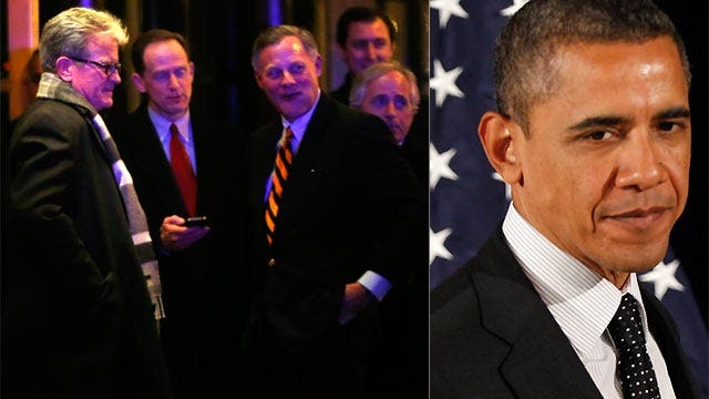 BRET BAIER, ANCHOR: Well, the president is aggressively reaching out. That is what the Republicans are saying. Senator Toomey was one of many senators invited to dinner at the Jefferson Hotel here in Washington last night. There you see the list of Republican senators who attended. Then today, Representative Paul Ryan, of course, the vice presidential nominee, he's also the House budget committee chairman, was at lunch along with Chris van Hollen who was on our set last night. The speaker of the House is optimistic, but maybe not too optimistic.