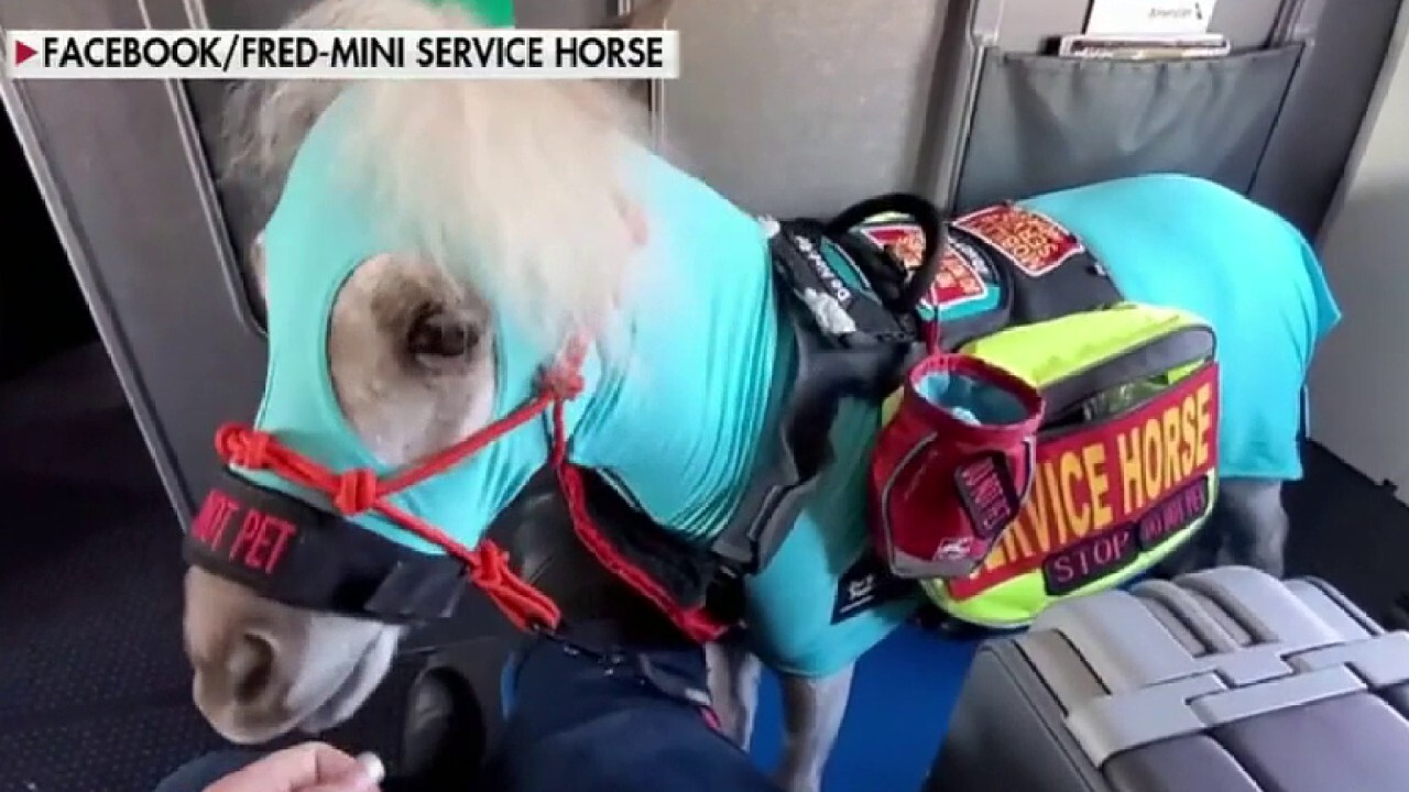 ARROYO: A lizard? I saw a lamb once, on a leash. But pictures emerged this week, that really took the case. A mini service horse named Fred, it flew first class from Grand Rapids to California. Did she think she was disguising it by dressing it as the Scooby Doo Van?