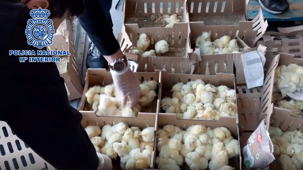 In a news release issued by Spain’s Policia Nacional, officials were first made aware of the shipment of chicks three days after they arrived at the Madrid airport, where they were being stored in a cargo area. The cardboard boxes holding the chicks had been damaged due to rain, which had stalled the next leg of their journey.