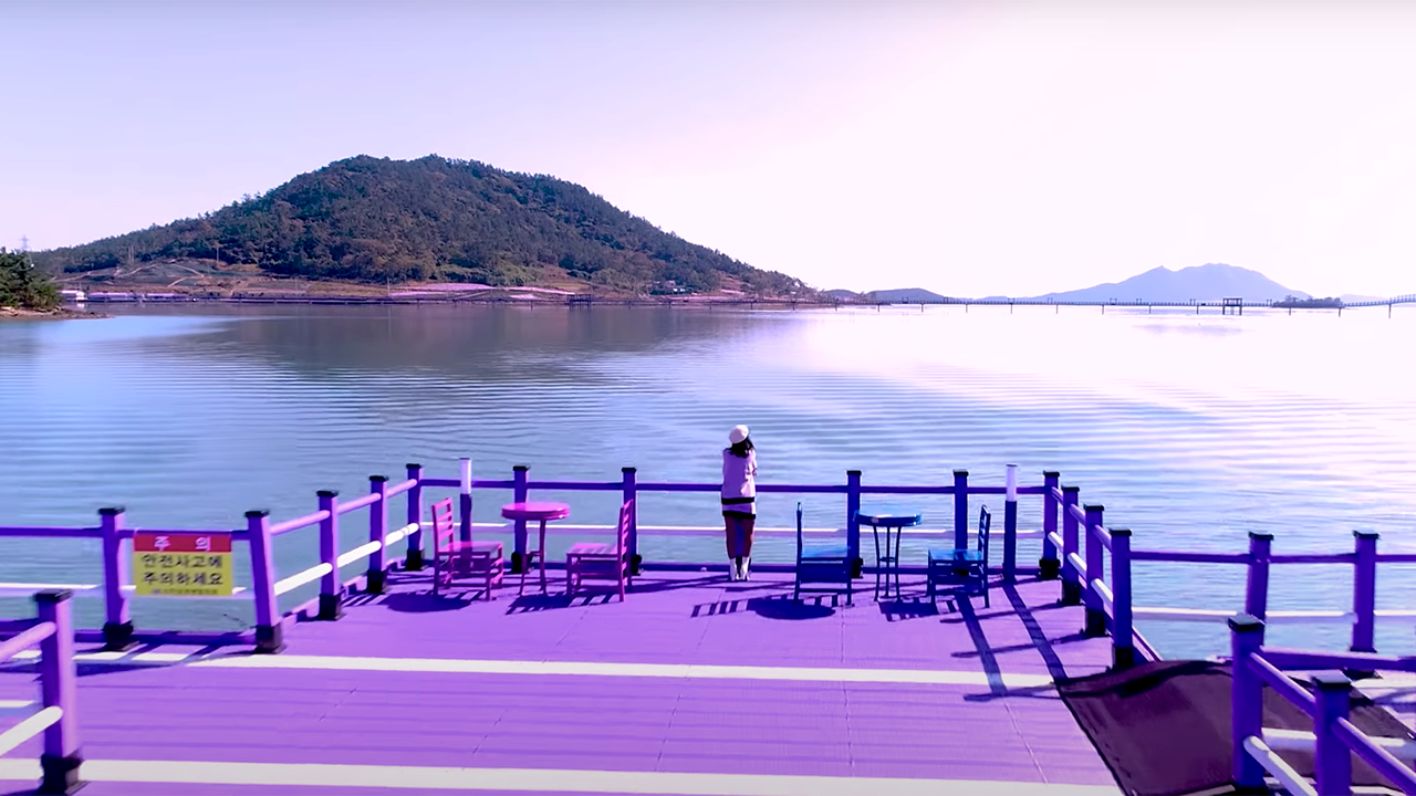 Shades of the secondary hue dominate the isle in the South Jeolla Province, as seen across 400 purple rooftops. (Visit Korea/YouTube)