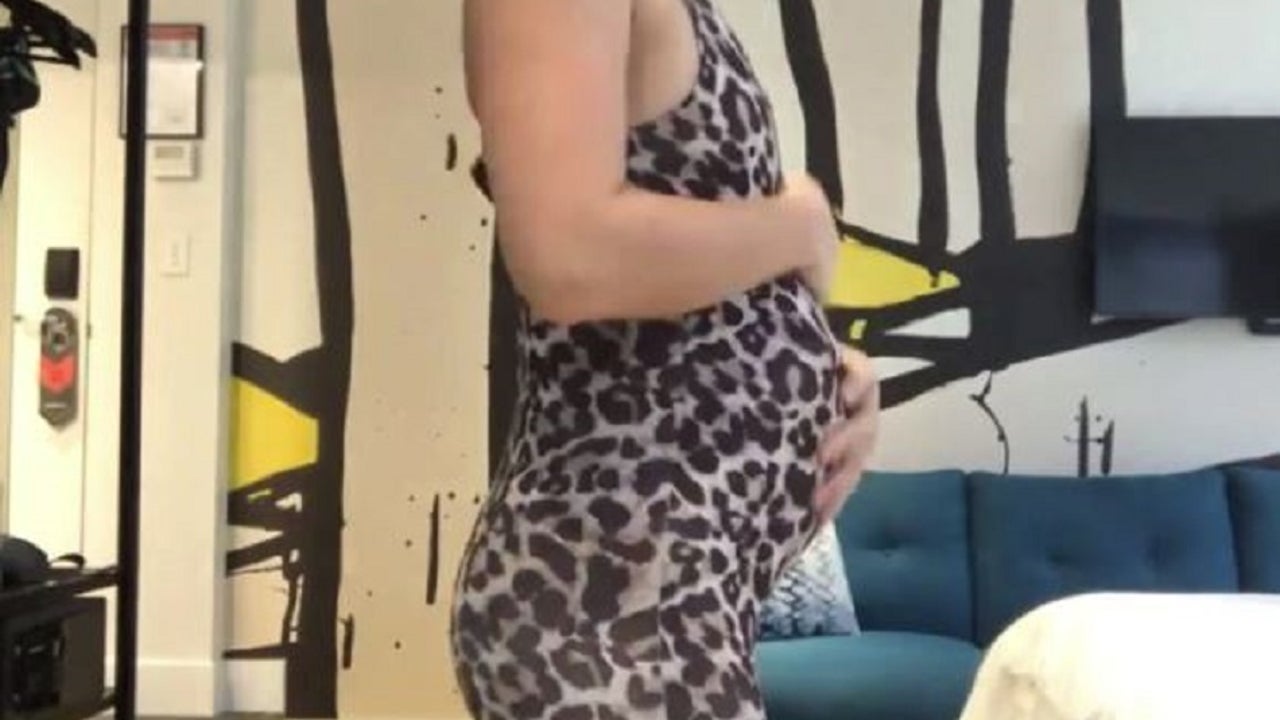 Wearing a lycra leotard, Andrews placed a laptop down her back and put the charger wrapped in clothing in front of her stomach to replicate a baby bump. She then dressed in jeans, a sweater and a jacket.
