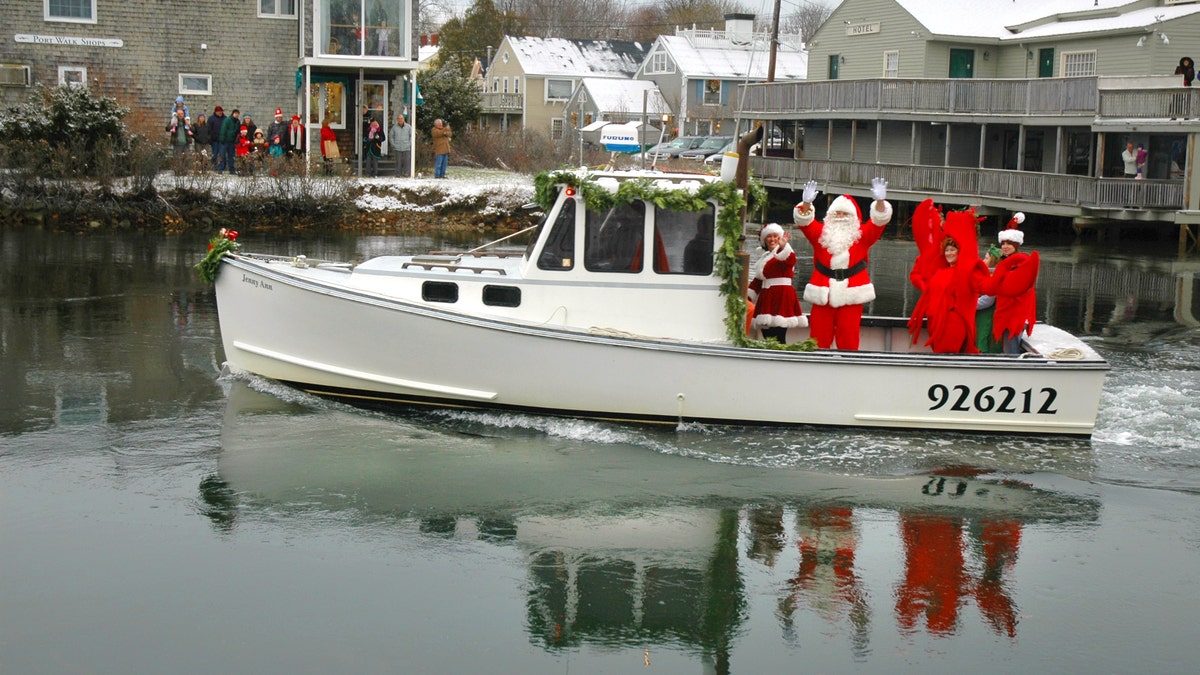 What do Santa and lobsters have in common? Why the festive color red, of course! In Kennebunkport, named the No. 2 Christmas Town in America by HGTV, Santa comes to town as part of the town’s annual Christmas Prelude celebration in what else, but a lobster boat?