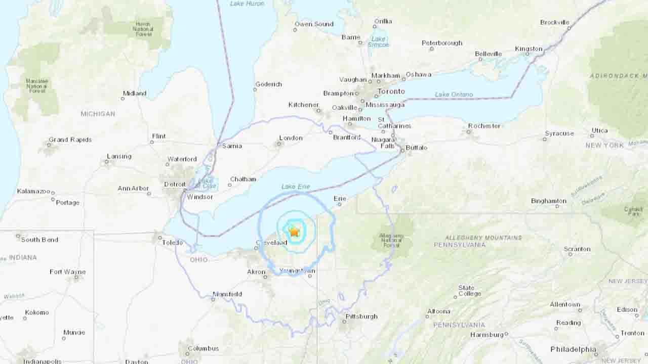 The quake was felt in Lake and Ashtabula Counties. Department of Transportation traffic cams recorded shaking along parts of I-90 and US-20. (U.S. Geological Survey)