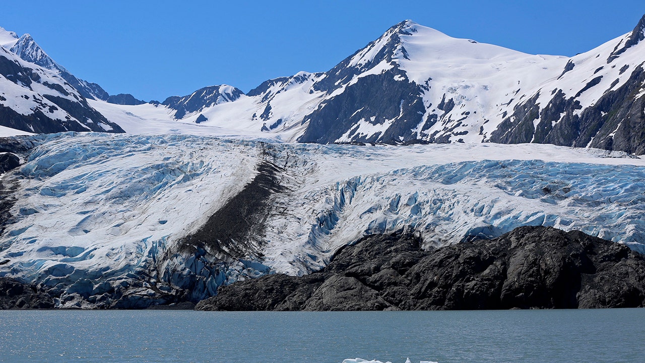 A chunk of ice floats past the Portage Glacier near Girdwood, Alaska, on June 14, 2021. (AP Photo/Mark Thiessen)