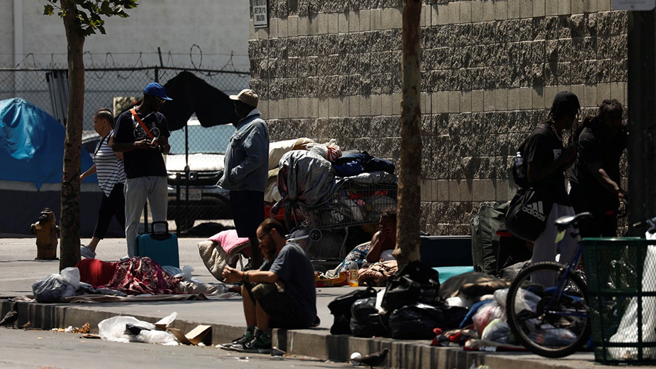 Carts and belongings of homeless people rest along sidewalks and streets in the skid row area of downtown Los Angeles, California, U.S., June 28, 2019. Four men have pleaded guilty to offering homeless people in the area money and cigarettes for false or forged signatures on state ballot petitions. (REUTERS/Patrick T. Fallon)