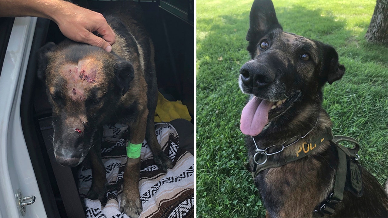 Four years after being stabbed on the job, a hero U.S. Forest Service police dog in California has survived a second on-duty knife attack.