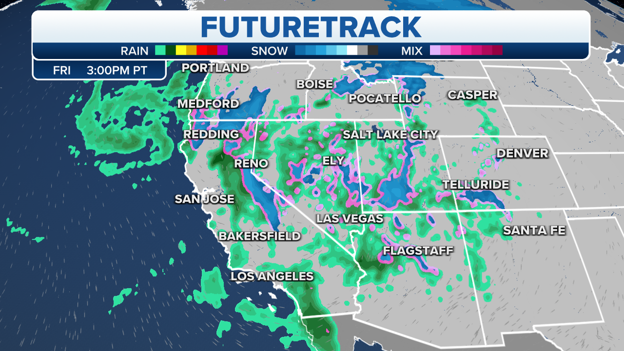 Rounds of heavy rain and mountain snow will move in as far south as California on Friday.
