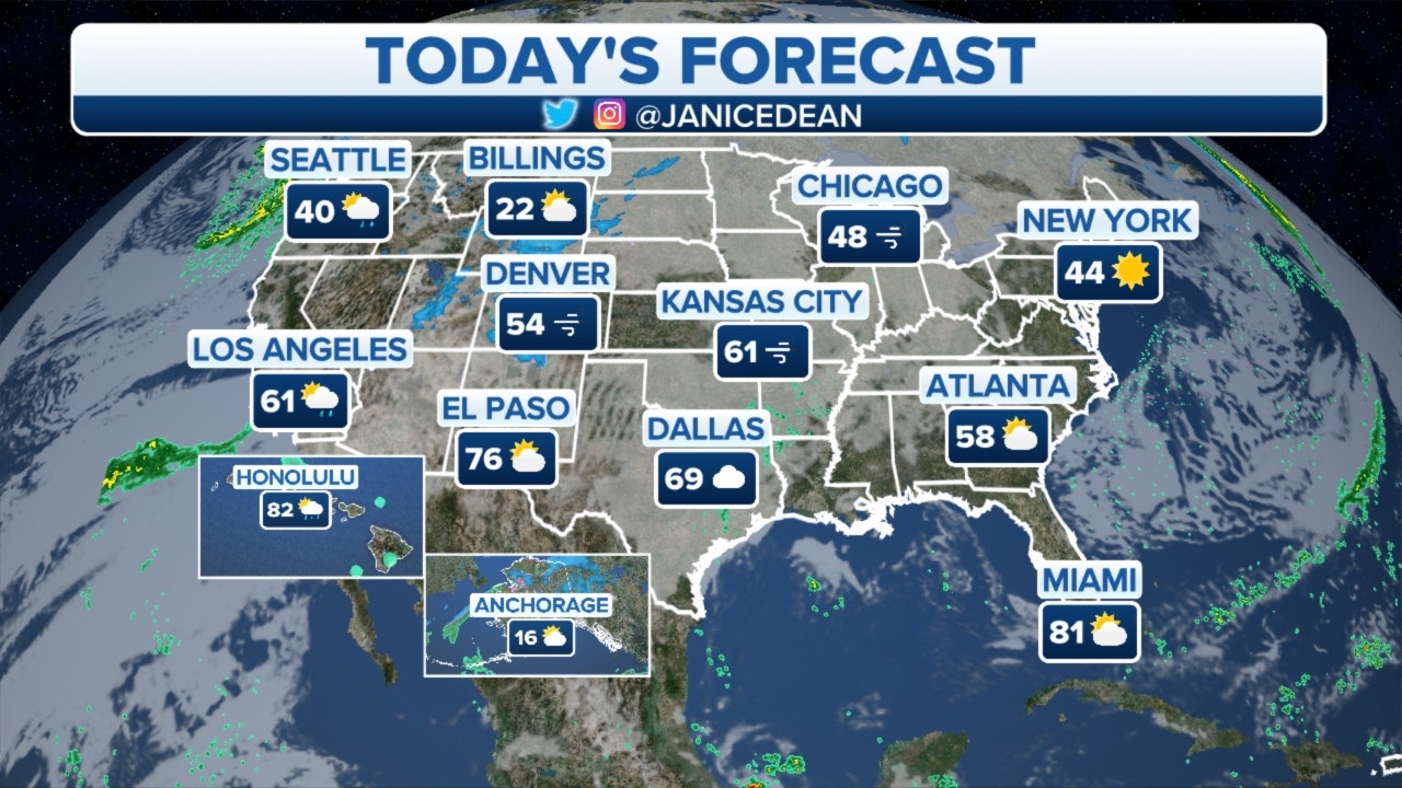 Meanwhile, arctic air will plunge southward across the northern Rockies, northern Plains and parts of the central U.S.