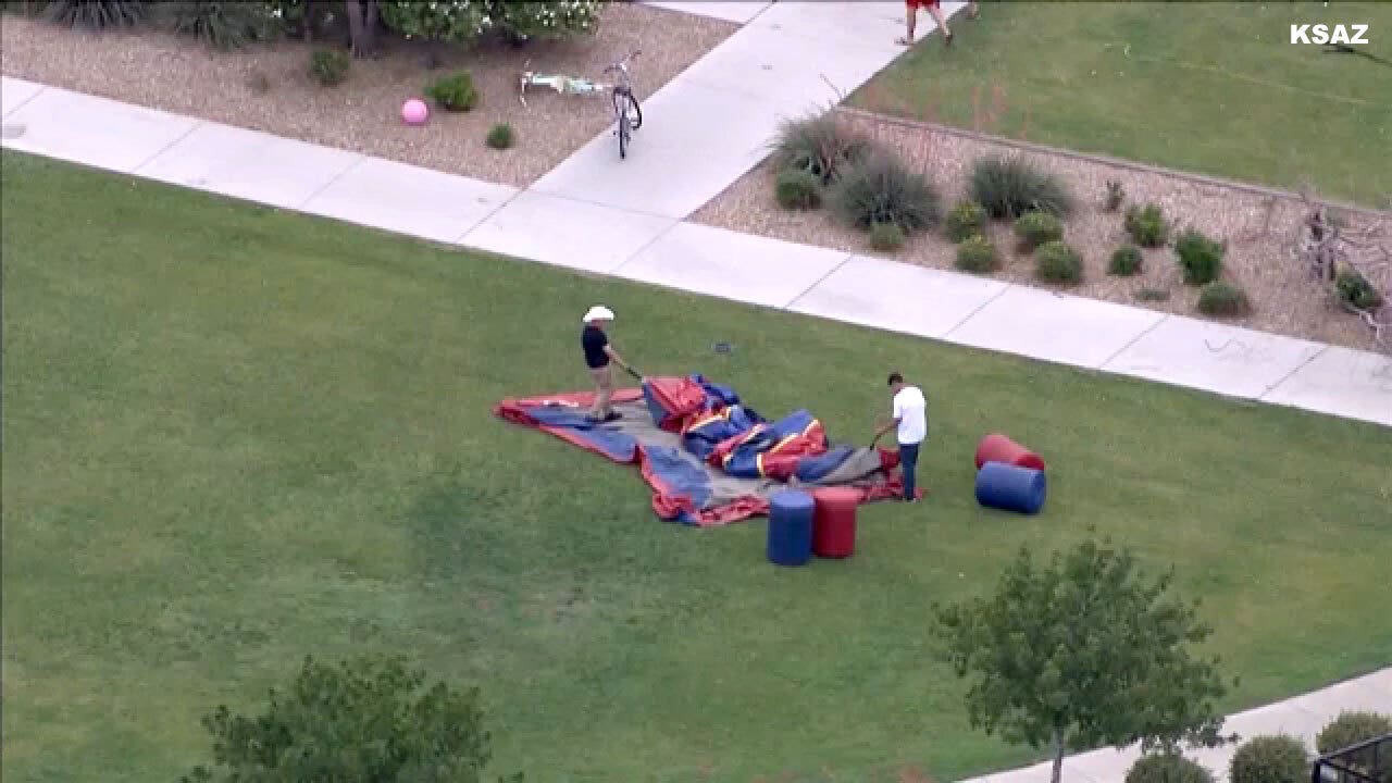 Witnesses reported seeing the bounce house being lifted several feet in the air by a strong gust of wind (KSAZ-TV)
