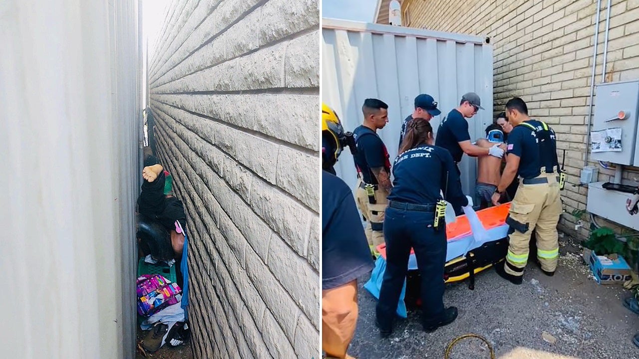 Firefighters in Arizona helped rescue a man who became trapped after he fell into a tight gap between a shipping container and a wall, authorities said Sunday.