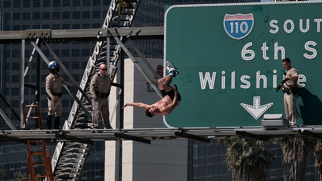 When law enforcement approached Dunn, the 30-year-old then climbed atop the sign, performed one last stunt, and then jumped onto two inflatable mattresses placed under the freeway signs.