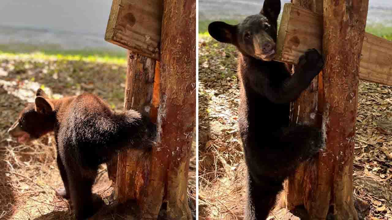 Florida wildlife officials helped a bear cub out of a "cub conundrum" last week after finding the animal with a paw stuck in a tree crook.