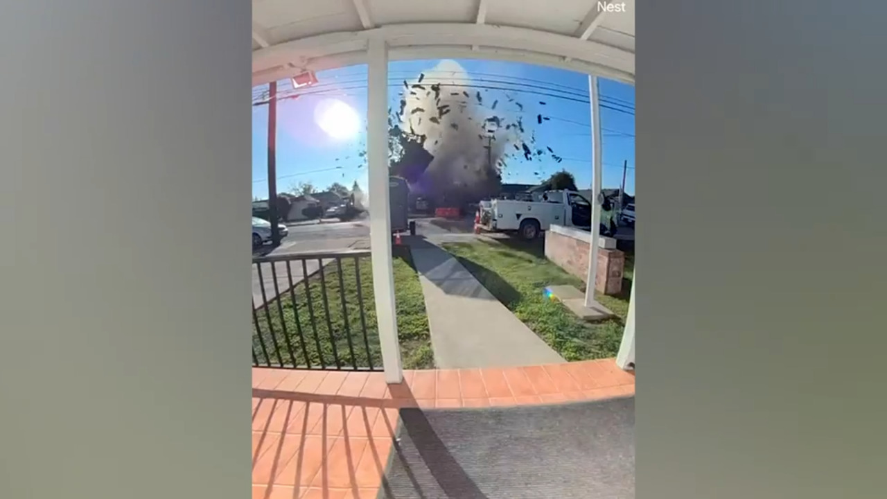 Footage from a doorbell camera at a home near Hayward in the San Francisco Bay Area showed a property blowing up Thursday, sending debris flying into the air. Sirens could then be heard as a fire broke out.