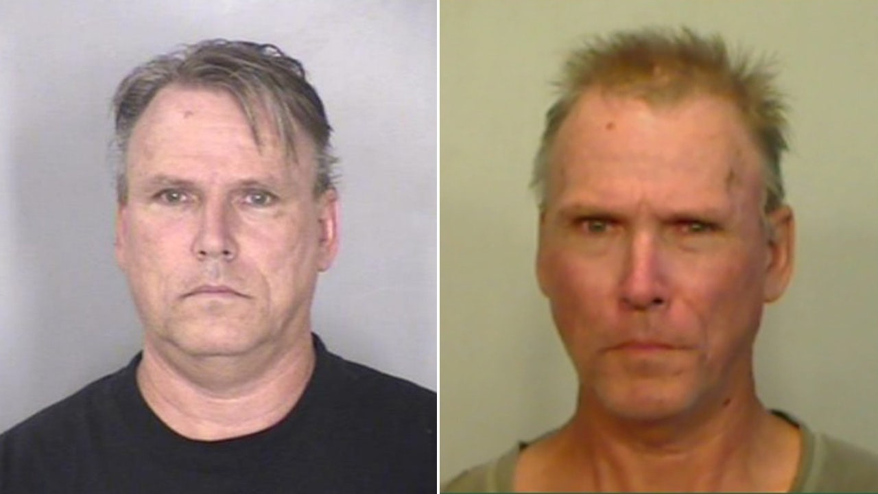 Michael Patrick Manning, 58, pictured on the left after his arrest on September 3, 2015, and again this month. (Chico Police Department/ Monroe County Sheriff’s Department)