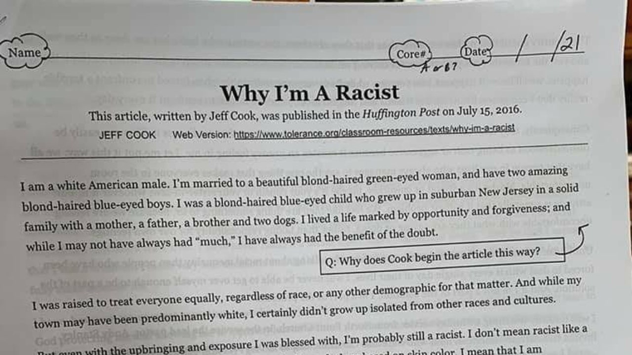 California middle school students were told early this year to read and analyze an op-ed published in The Huffington Post in 2016 titled, "Why I'm a Racist," sparking backlash from some parents.