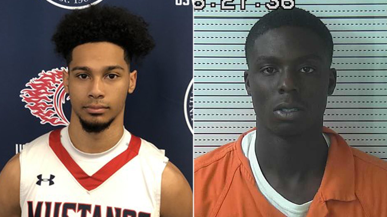 Lama Lee-Kane Jr. played basketball at University of the Southwest in Hobbs, New Mexico. Mugshot for Bishop Henderson, 19, who was charged with battery in connection with a shooting that left Lee-Kane and two others dead and four others wounded. (University of the Southwest/Hobbs Police Department)