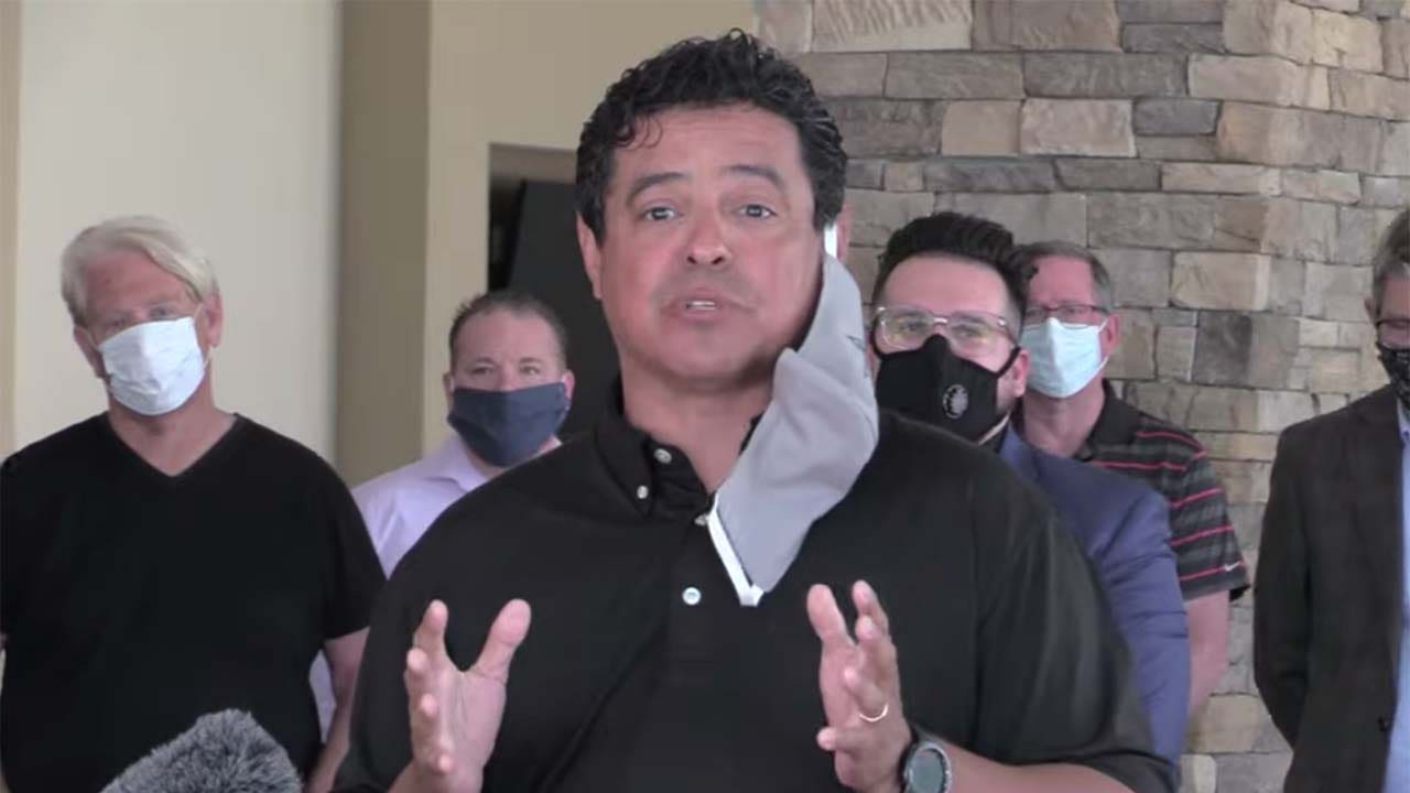 Pastor Eli Loera of Family Christian Assembly in Fresno, Calif., spoke in Spanish, urging Gov. Gavin Newsom to reopen churches earlier than expected. (Church United)