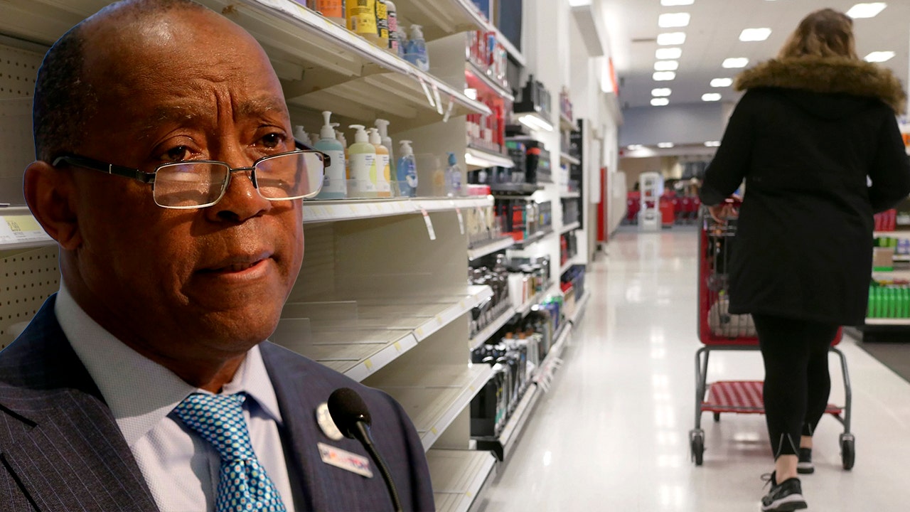 Mayor Sylvester Turner tweeted about people panic-buying amid the coronavirus outbreak. In this March 3, 2020 file photo, shelves that held hand sanitizer and hand soap are mostly empty at a Target in Jersey City, N.J. (Getty/AP Photo/Seth Wenig)