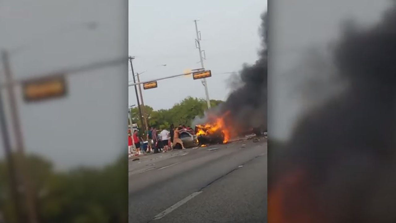 Police thanked the citizens of Dallas for helping to save the trapped man before the flames engulfed the car. (Dallas Police Department)