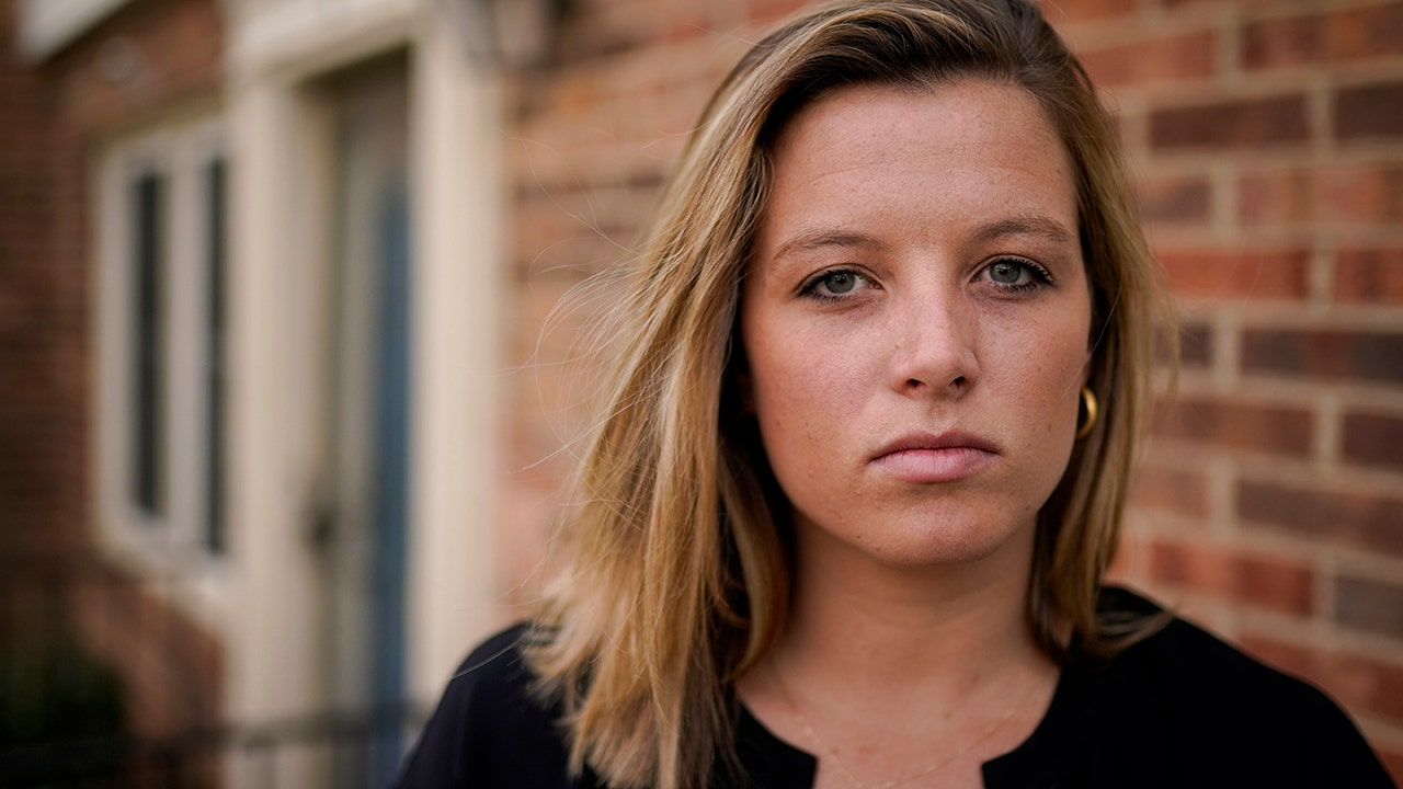 Shannon Keeler poses for a portrait in the United States on Wednesday, April 7, 2021. A series of online messages from a long-ago schoolmate has Keeler, a Gettysburg College graduate, trying again to get authorities to make an arrest in her 2013 sexual assault. (AP Photo)