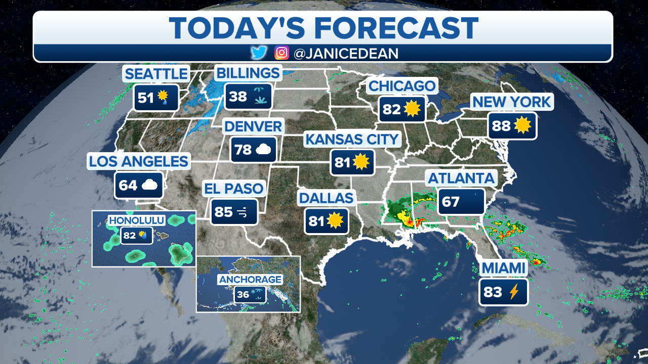 The threat of severe storms forecast in the Southeast, Gulf Coast and Florida (Credit: Fox News)