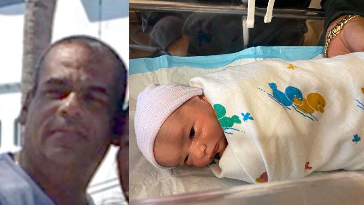 One-week-old Andrew Caballeiro and his father, Ernesto Caballeiro, 49.