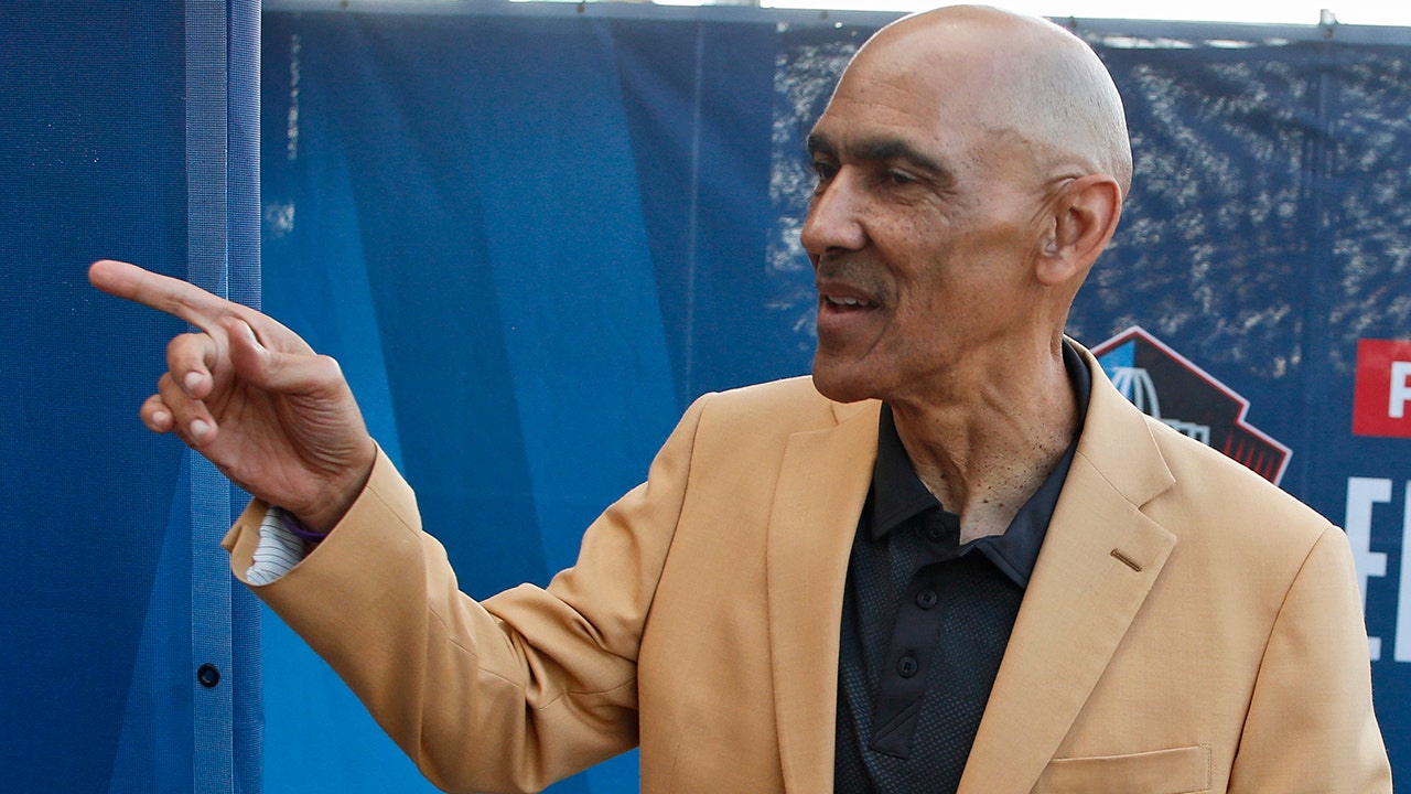 FILE - In this 2019 photo, former NFL player Tony Dungy is introduced before the induction ceremony at the Pro Football Hall of Fame in Canton, Ohio. (AP Photo/Ron Schwane, File)