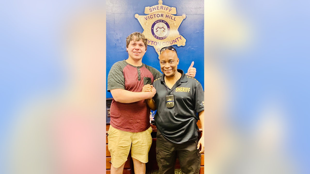 Bread deliveryman Joseph Chilton with Clayton County Sheriff Victor Hill. (Clayton County Sheriff's Office )