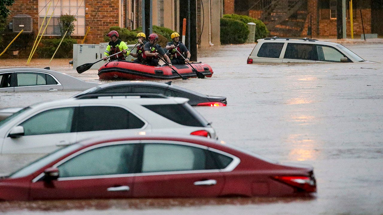 A flash flood emergency in Alabama knocked out power for tens of thousands of customers, toppled trees and forced boat rescues on city streets and highways.