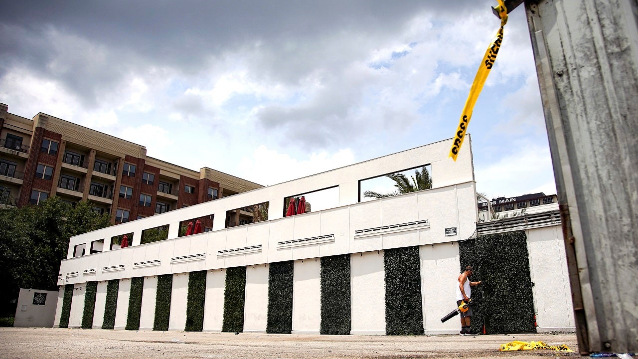 Police tape remains at Club Clé nightclub, following a shooting early this morning that left two dead and two injured on Monday, May 31, 2021 in Houston. (Elizabeth Conley/Houston Chronicle via AP) (Elizabeth Conley/Houston Chronicle via AP)