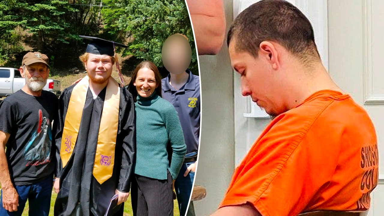 The left image shows victims Kenneth Guardipee, Devin Smith, Kenna Guardipee and a juvenile whose name was redacted in court documents; the right image shows suspected killer and neighbor Majorjon Kaylor in court. (Kenna Guardipee/Facebook | Josh McDonald/Shoshone News-Press via AP)