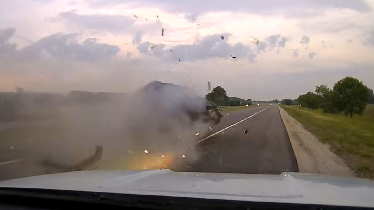 Dashcam video of the incident shows the Jeep, which police say was driven by Matthew Scherer, 55, rolling several times after crashing into the sergeant's car.