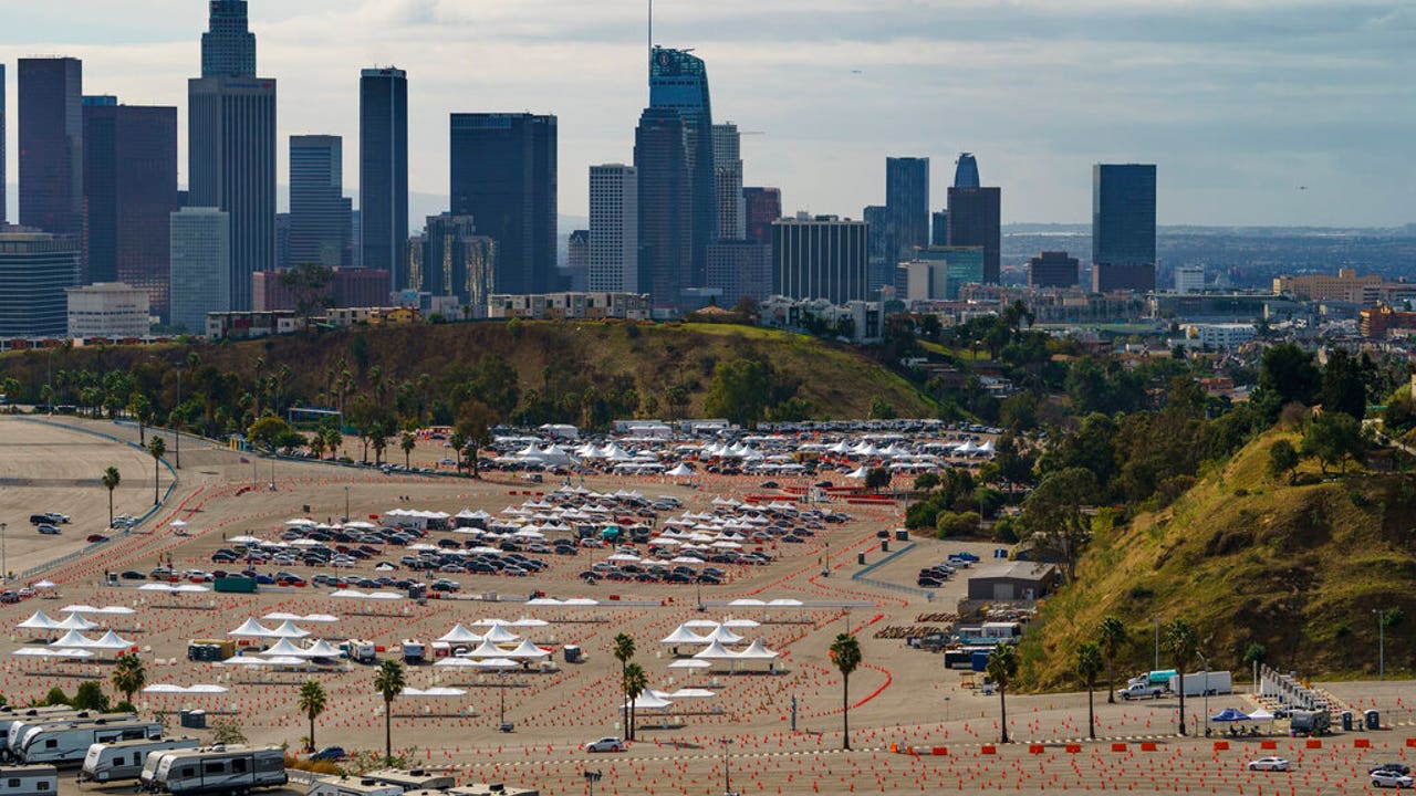 Drivers wait in line at a mega COVID-19 vaccination site set up in the parking lot of Dodger Stadium in Los Angeles, Wednesday, Jan. 27, 2021. (AP)