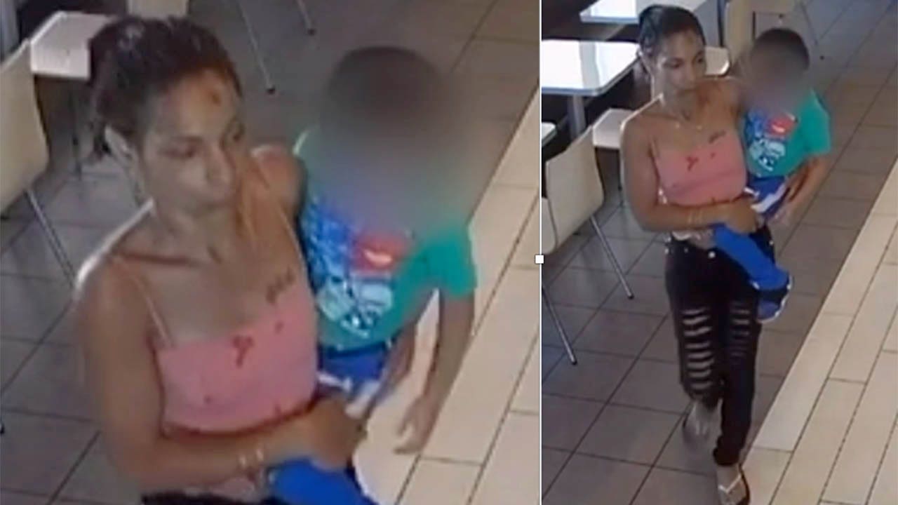 Police said that at around 3:15 Tuesday afternoon, surveillance cameras inside the McDonald's on East Olympic Boulevard showed a woman -- said to be Ramos -- approaching the child and carrying him out of the fast-food restaurant.