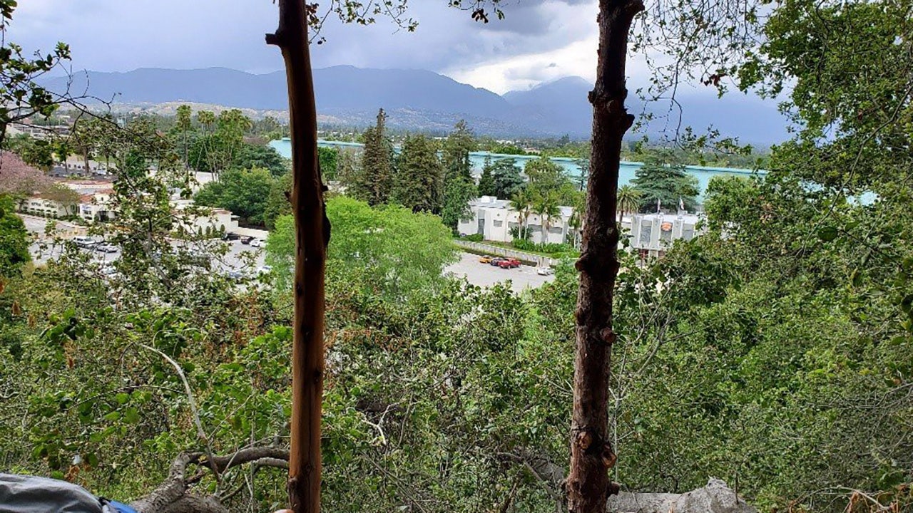 Mark Robert Duda, 56, of Pomona, was living in what officials described as a “well-built and modern treehouse” when police arrested him on suspicion of burglary. Police said Duda broke into a Ganesha Hills home and stole multiple items April 18.