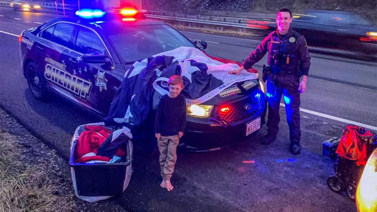 A Maryland sheriff’s deputy on patrol near Cumberland pulled over a car and discovered a trio taking part in a project to drive an American flag across the country.