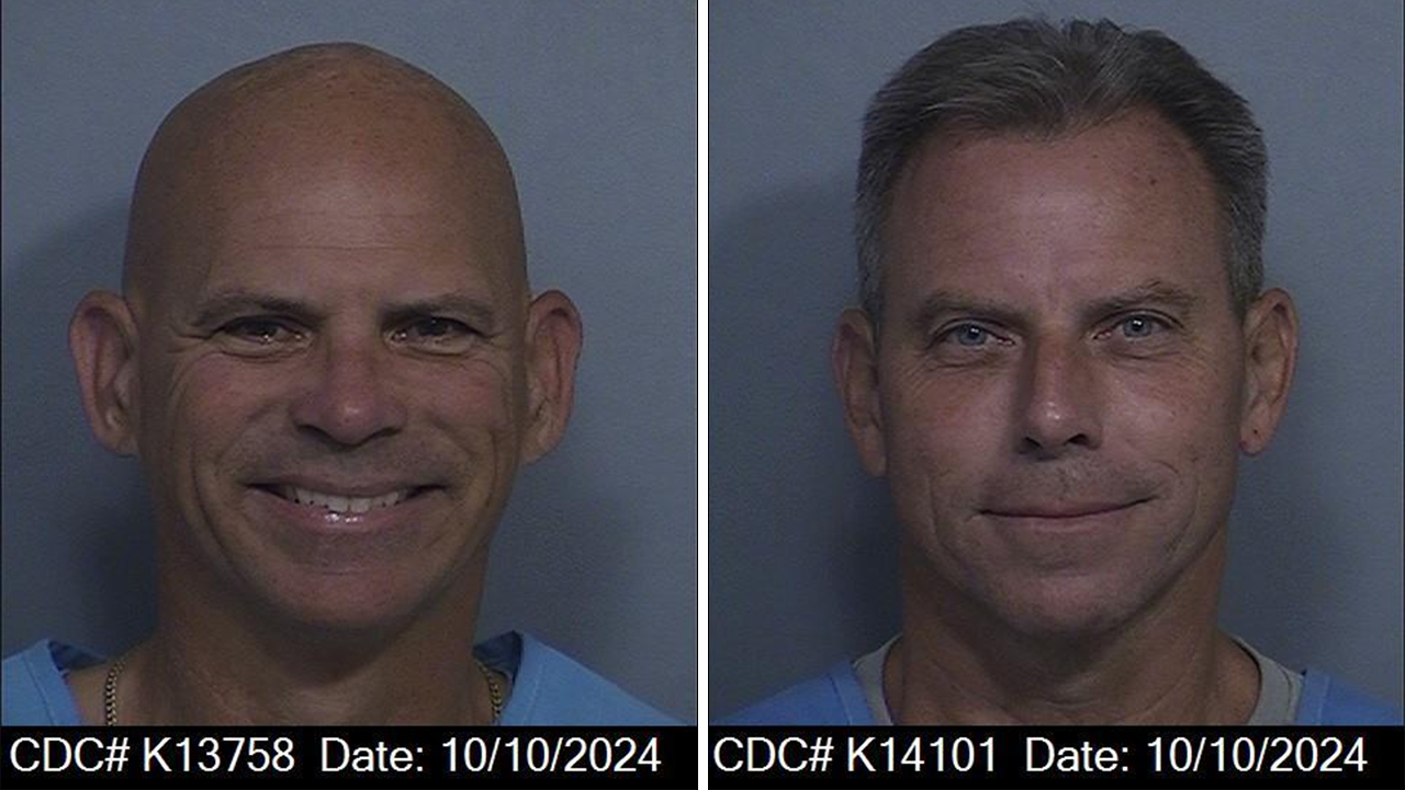 Lyle Menendez, left, and his brother Erik are pictured in their most recent mugshots, taken on Oct. 10. (California Department of Corrections and Rehabilitation)