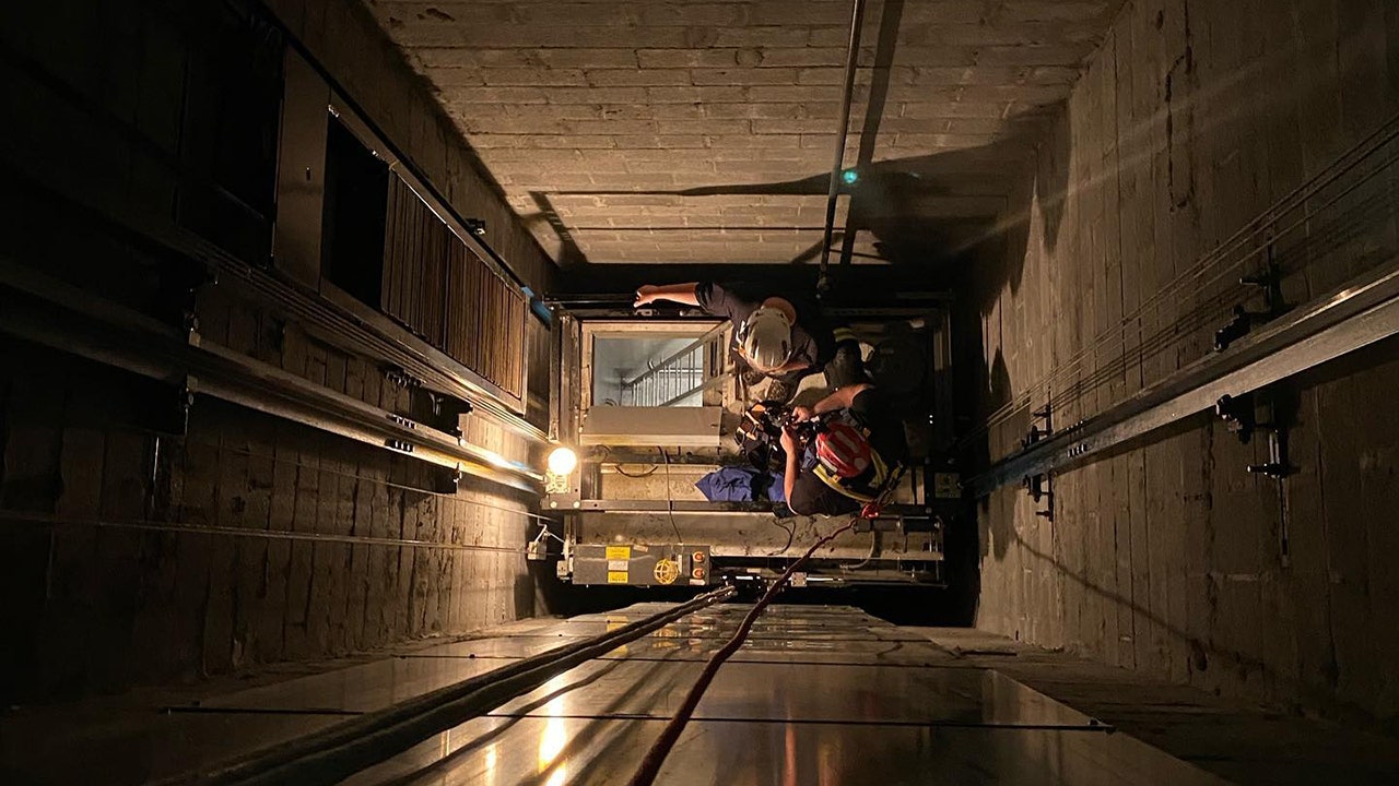With temperatures inside the elevator climbing to dangerous levels, firefighters decided that a rope rescue was the only option.