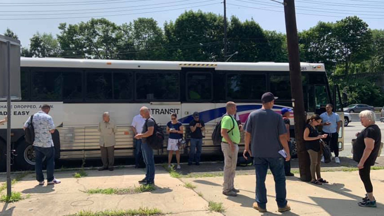 A 69-year-old woman was injured Sunday after sitting on sulfuric acid onboard a New Jersey Transit bus, officials say, similar to the one pictured above. (Fox News)