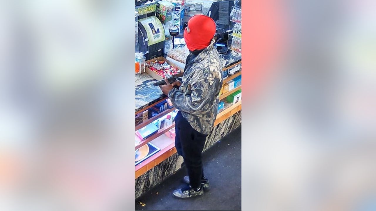 Images released by the department show the suspect entering the store and holding what appears to be a pistol near a cash register.