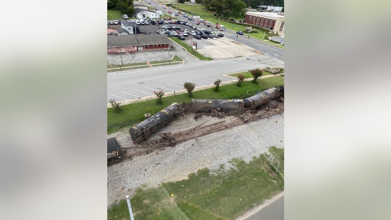 A train derailed Tuesday in Warner Robbins, Georgia, officials said. No injuries were reported. (Houston County Emergency Management Agency)