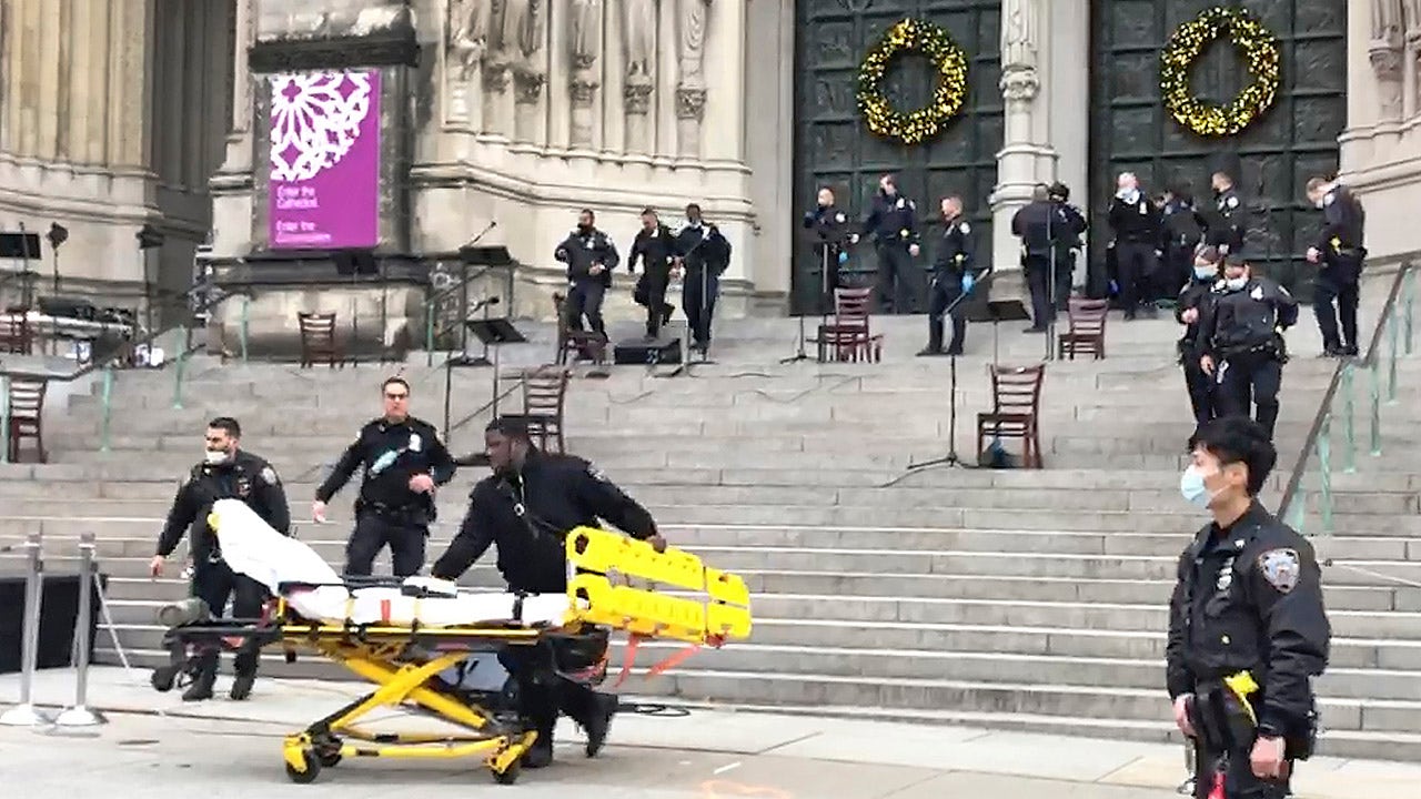 The gunman, identified by the New York Post as Luis Vasquez, was fatally shot by police on the steps of the Cathedral of St. John the Divine, mother church of the Episcopal Diocese of New York, shortly before 4 p.m. Sunday in the Morningside Heights section of Manhattan. Police would not immediately confirm the shooter’s identity to Fox News.