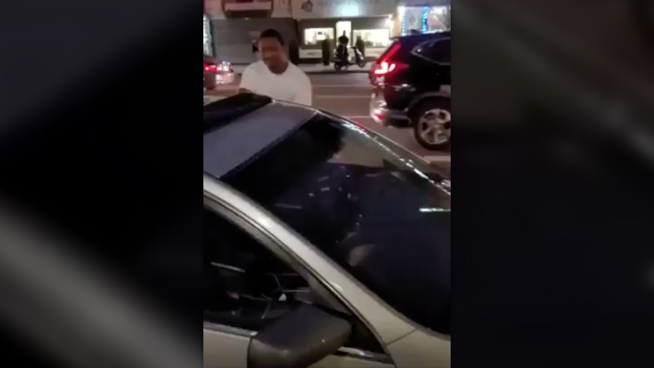 The NYPD video shows the man trying to shield his face from the camera with the vehicle’s temporary cardboard license plate.