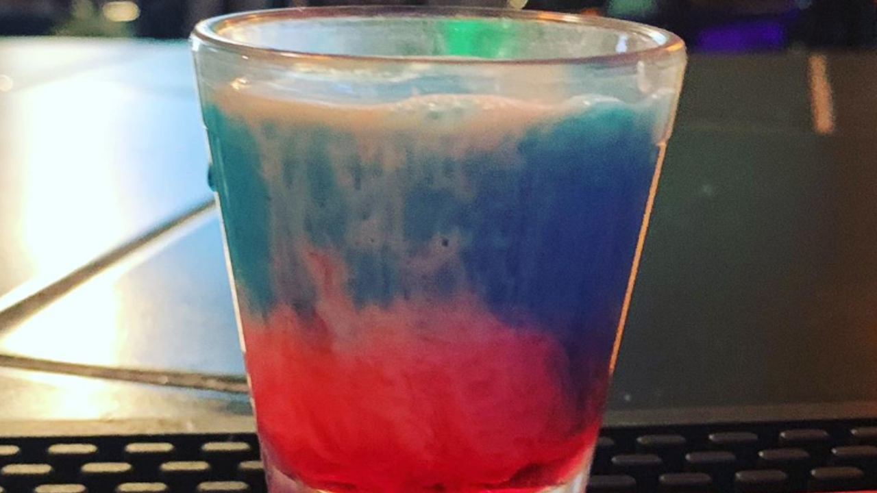 Karma Kafe in Akron posted a photo of what appears to be a red and blue slushy in a shot glass and said, "Today's special, the 9/11 shot only $4.00!!!!"