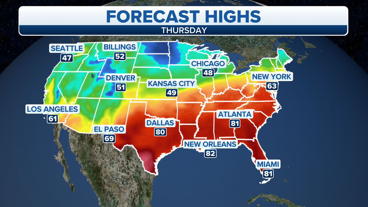 Strong-to-severe thunderstorms will be a big concern for the southern Plains and the Mississippi and Ohio valleys through Friday, with a possible tornado outbreak.