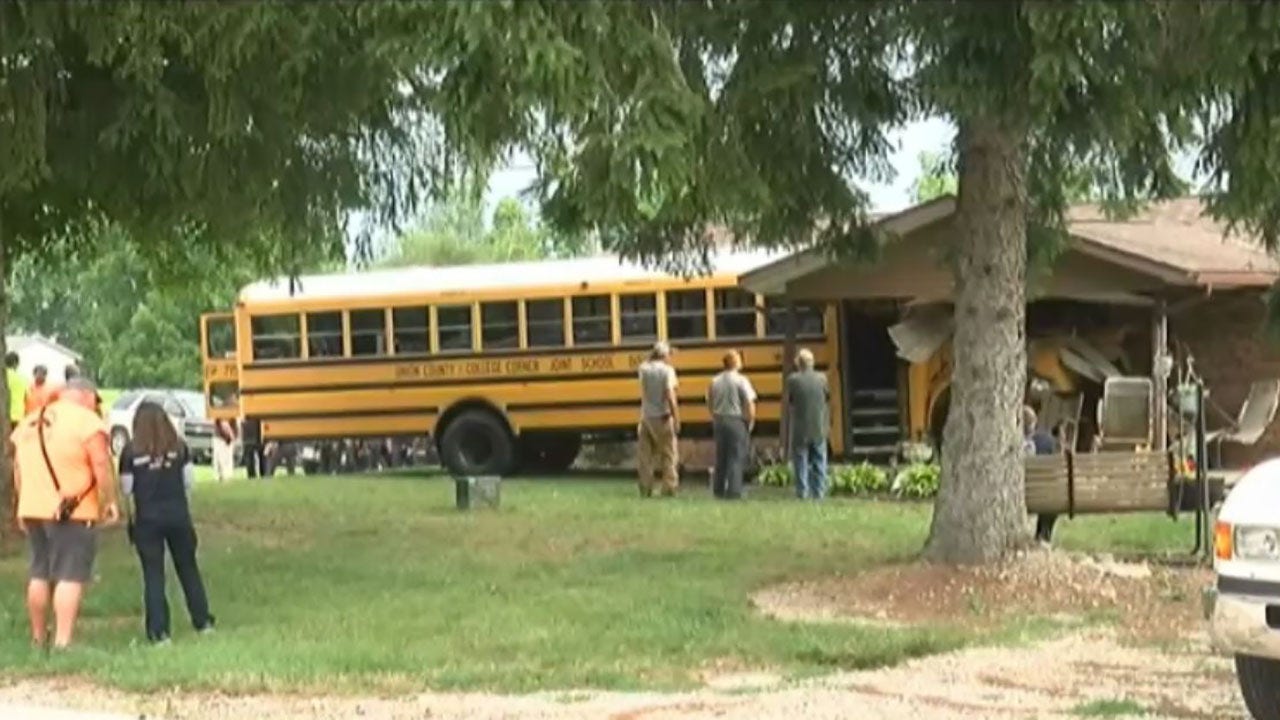 No students were injured on board the bus that crashed into a home early Monday in College Corner, Ohio, authorities said. (FOX19 Cincinnati WXIX)