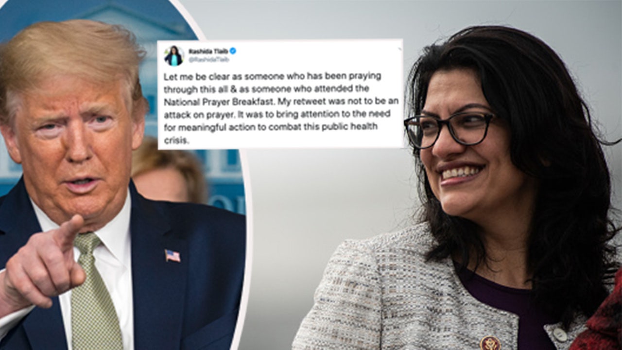 Rep. Rashida Tlaib appeared to denigrate President Trump's proclamation for a National Day of Prayer amid the coronavirus pandemic, but later explained: "It was not an attack on prayer."
