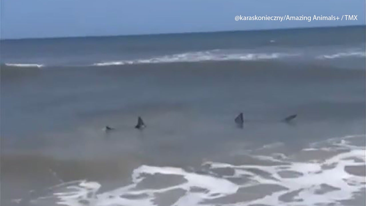 Sharks were spotted over the weekend in the shallow waters off Neptune Beach, Florida. (@karaskonieczny/Amazing Animals+ / TMX)