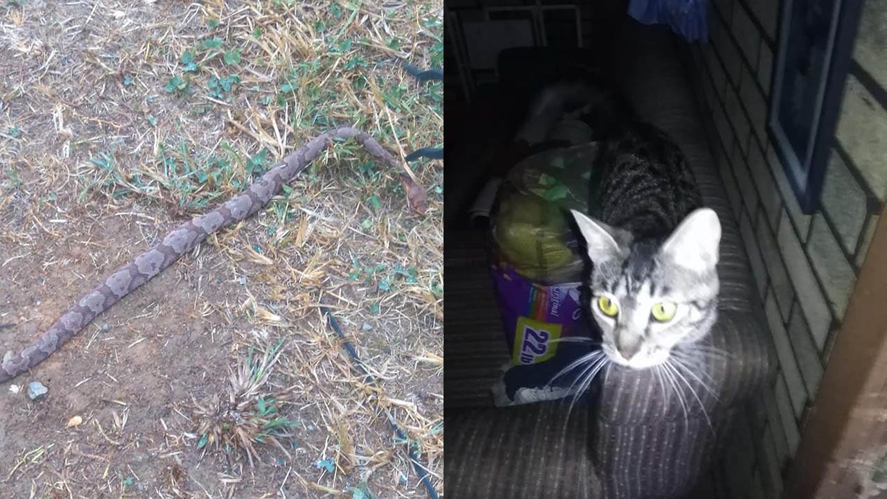 A Tennessee woman says a paw-some shelter cat saved her 81-year-old father from a venomous snake that had crawled into the house.