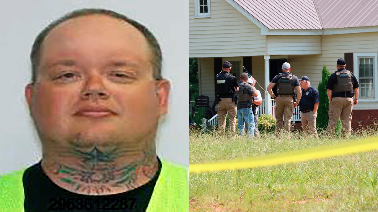 Jeffery David Powell, 36, was captured this week in Florida after authorities said he allegedly killed three people at a home in South Carolina ((Greenwood County Sheriff's Office via AP, Damian Dominguez/The Index-Journal via AP))